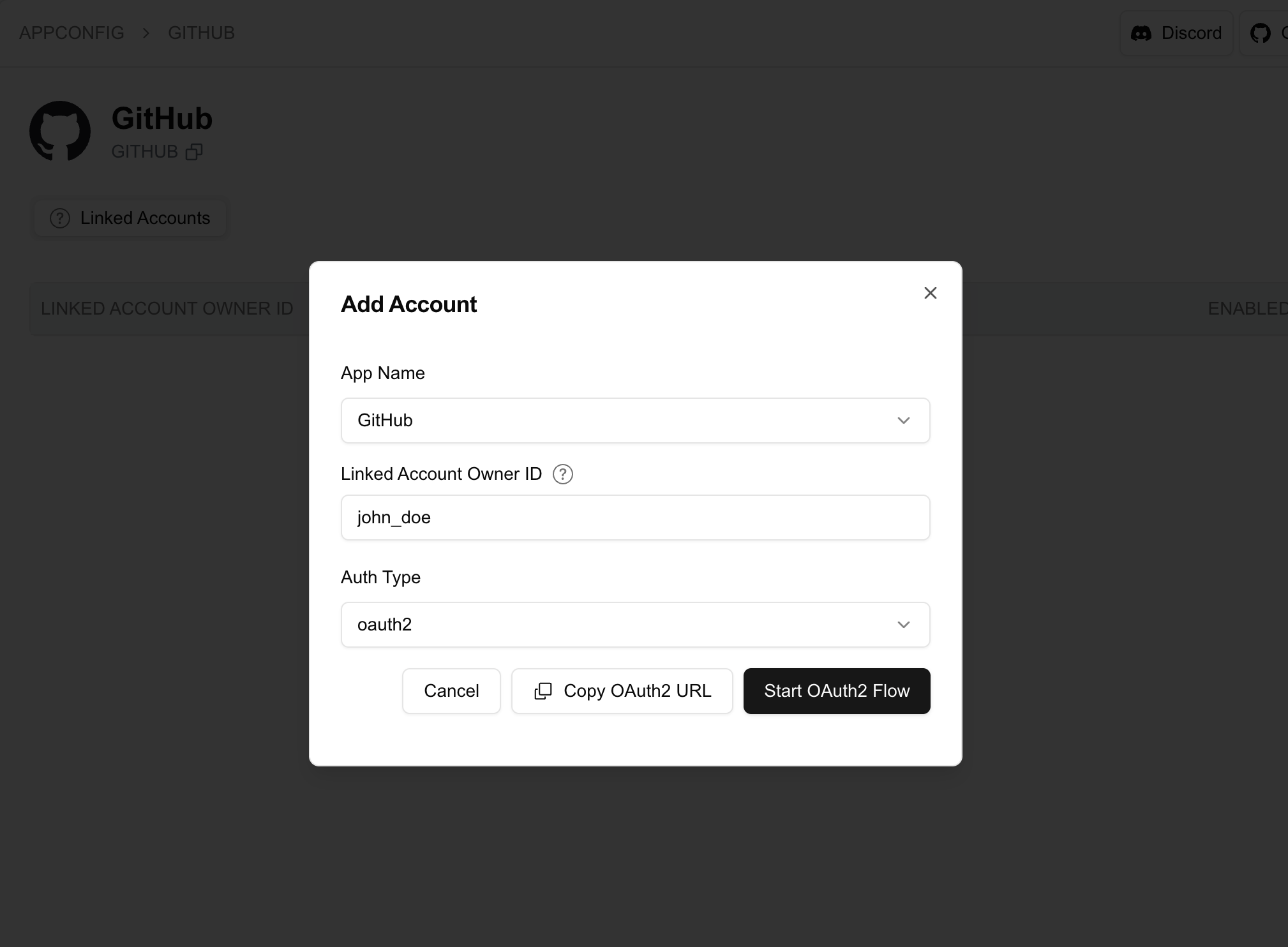 is the ID of the owner of the linked account. It’s up to you to decide which ID to use—it can be the unique end-user ID from your system. Or If you’re building an agent for yourself, you can choose any name you prefer. Later, you’ll need to provide this linked account owner id